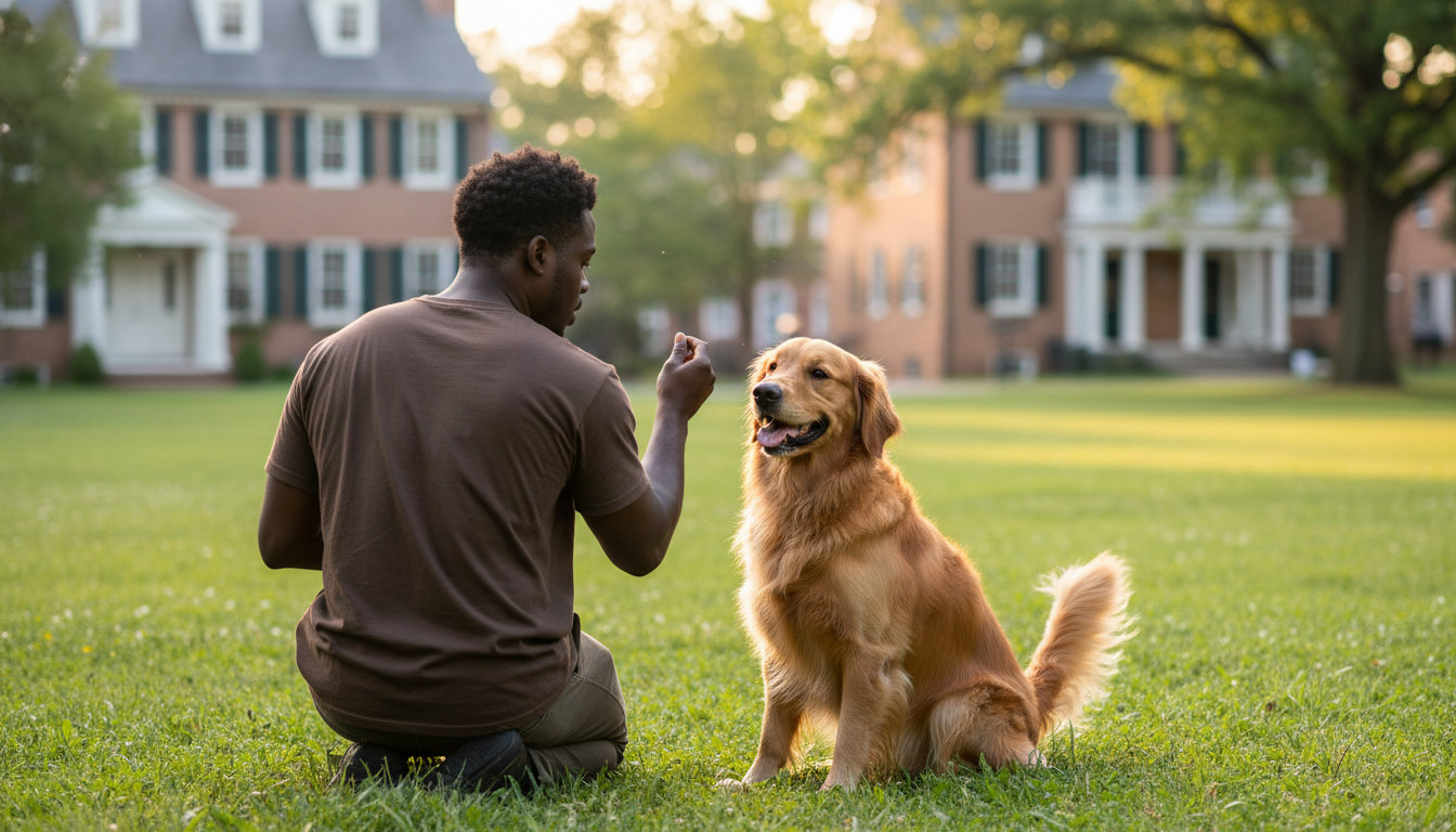 Basic obedience training**** covers essential commands like sit, down, stay, and a reliable recall. These skills are the foundation for safe walks on the Colonial Parkway and calm behavior in pet-friendly shops.