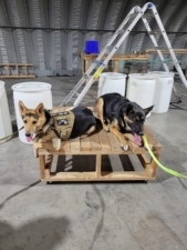 Shannon Rowe is a Certified Master Dog Trainer with 30+ years in dog training and 500+ hours in mold detection training. Marjorie Maddison is CTDI and AACE certified in trick training. Trainers are certified in AKC CGC, Urban CGC, Community Canine, S.T.A.R. Puppy, and Robert Cabral’s Shelter Dog Training Course. K-9 Whiskey and Shannon are dual-certified in toxic mold detection.