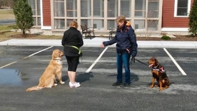 Dog Lovers Training offers group classes for puppy socialization and general obedience, emphasizing small class sizes for individual attention. Private lessons are customized to specific needs and can take place at the client’s home, the facility in Bennington, or various public locations to ensure dogs generalize learned behaviors.